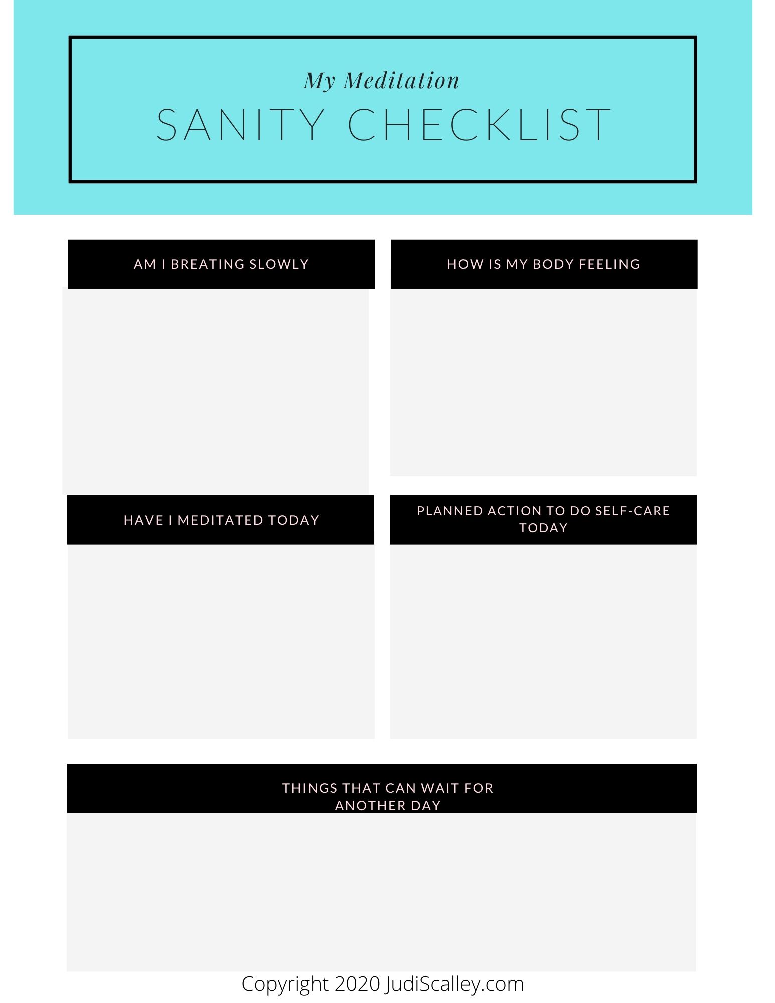 Download this free Sanity Checklist PDF as a guide through your meditations! You will be able to keep track of your progress and maintain your self-care!